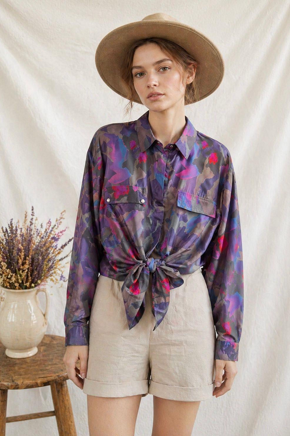 %100 ipek kumaş, Standart beden, bol kesim, 80ler desenli ipek gömlek.
