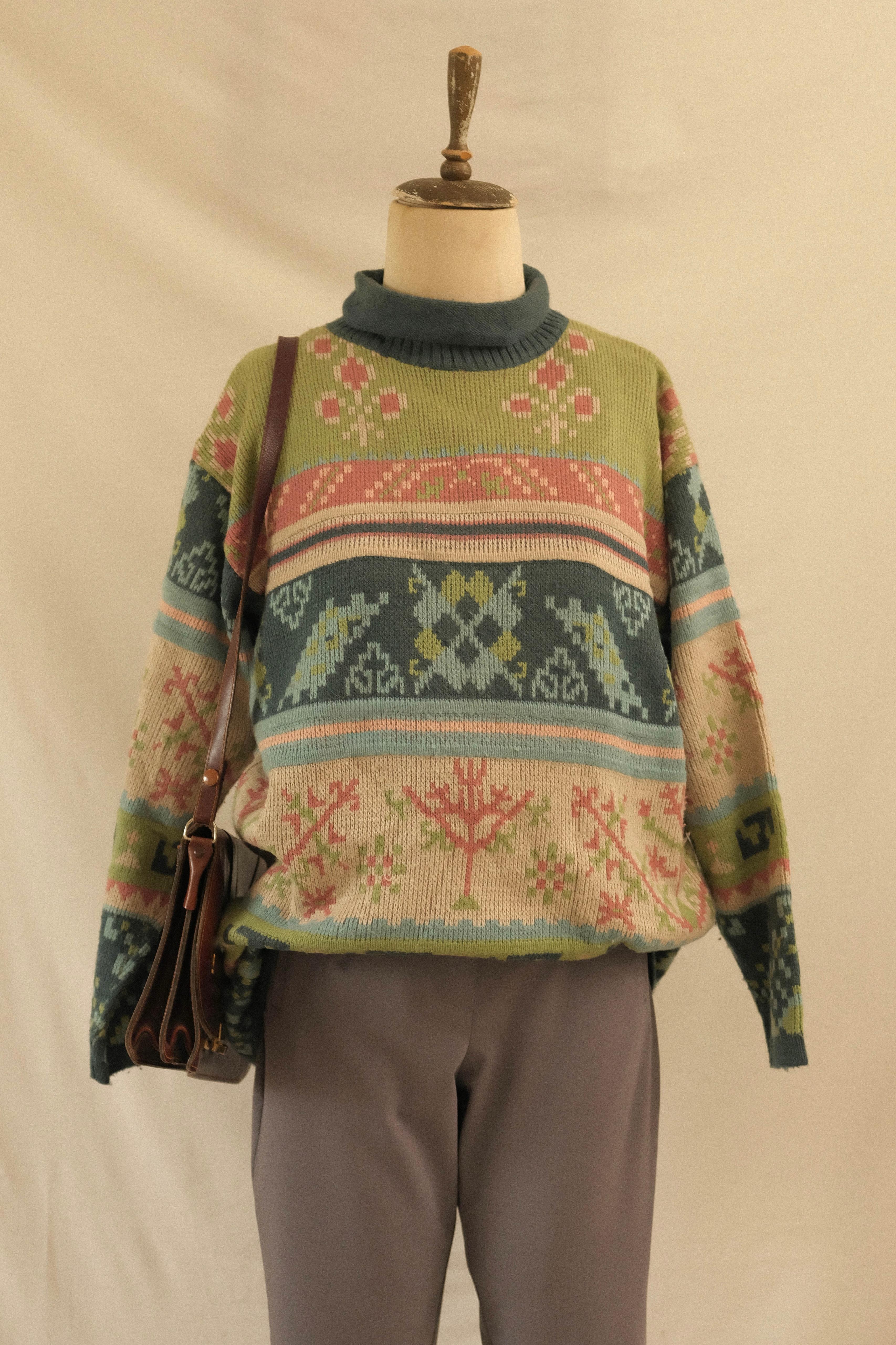 Yün & Akrilik örme, Standart beden, bol kesim, 90lar boğazlı kazak.