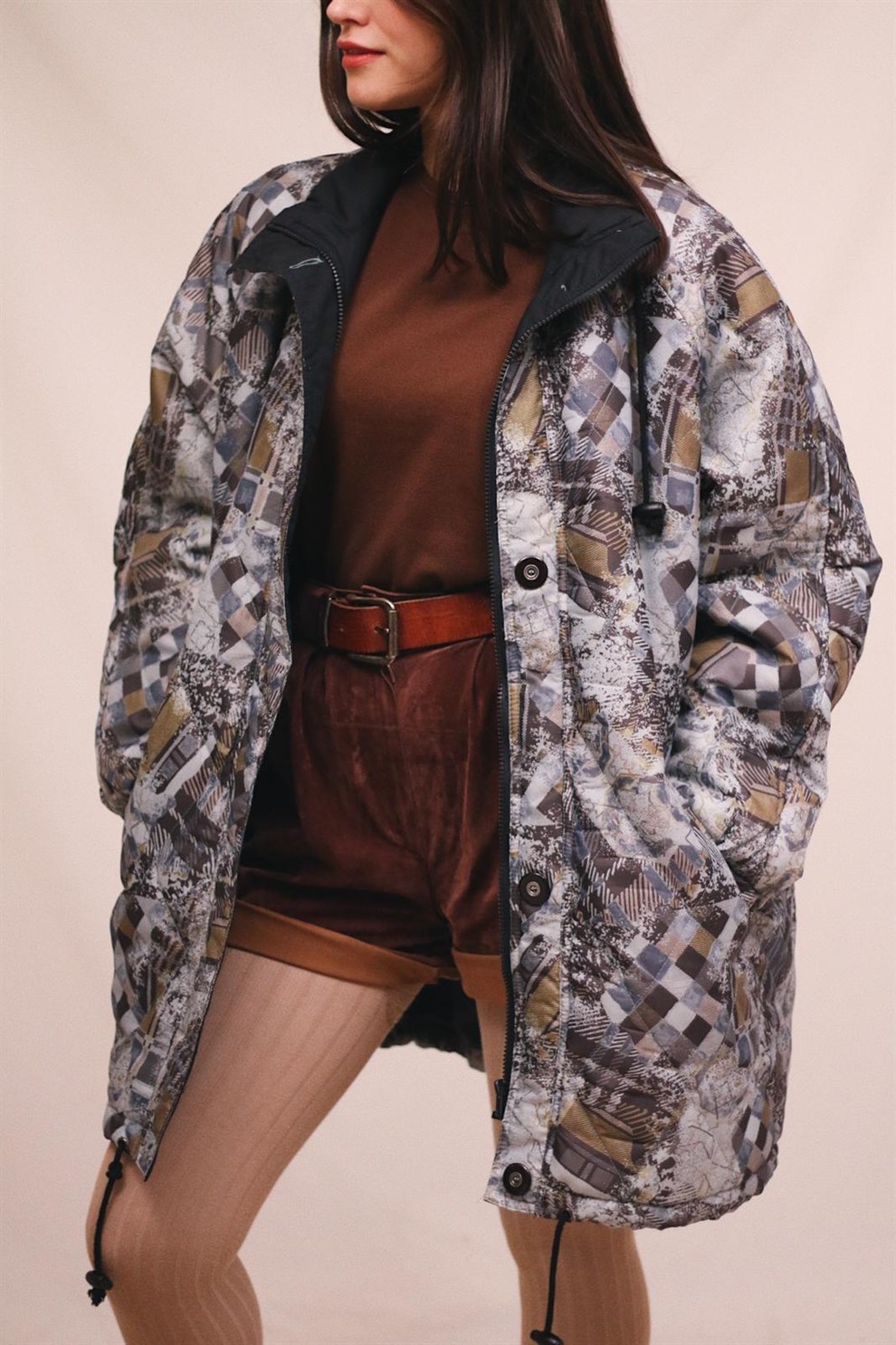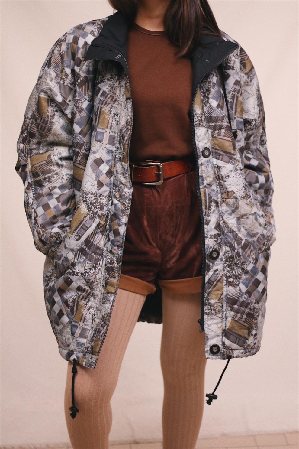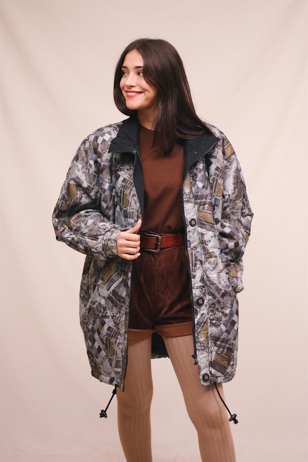 Polyester fabric, oversize size, loose cut ethnic snow coat.