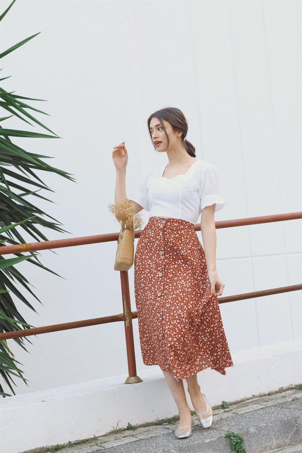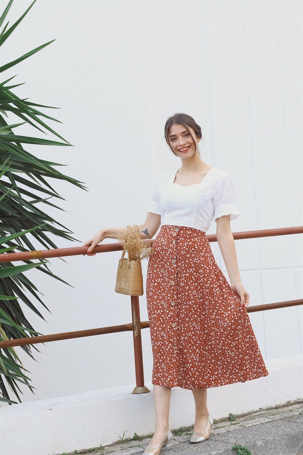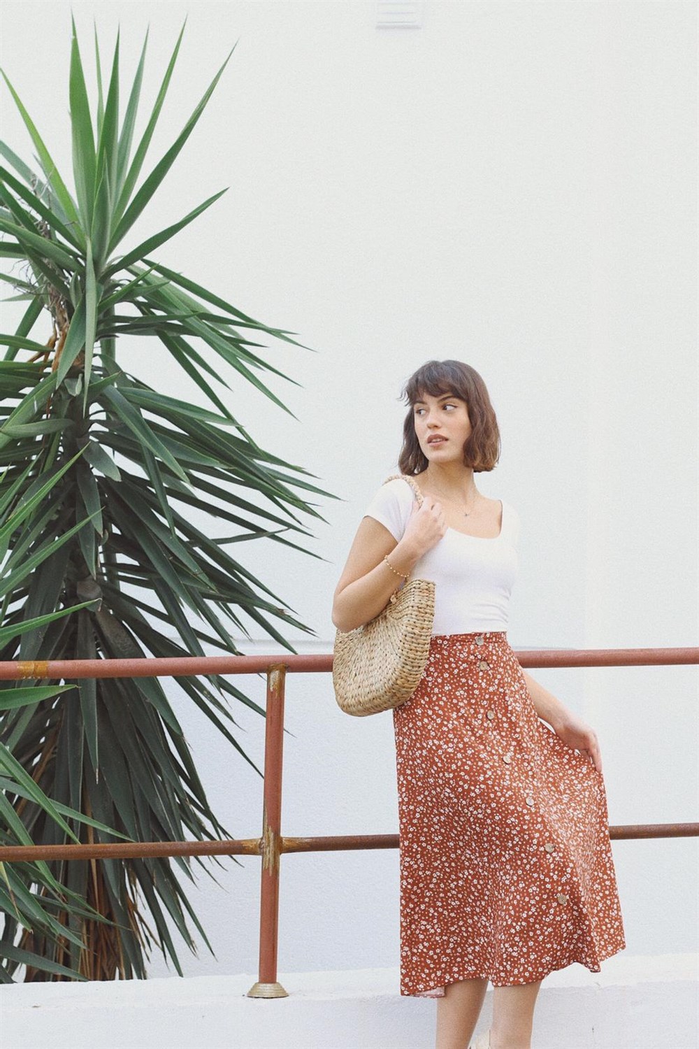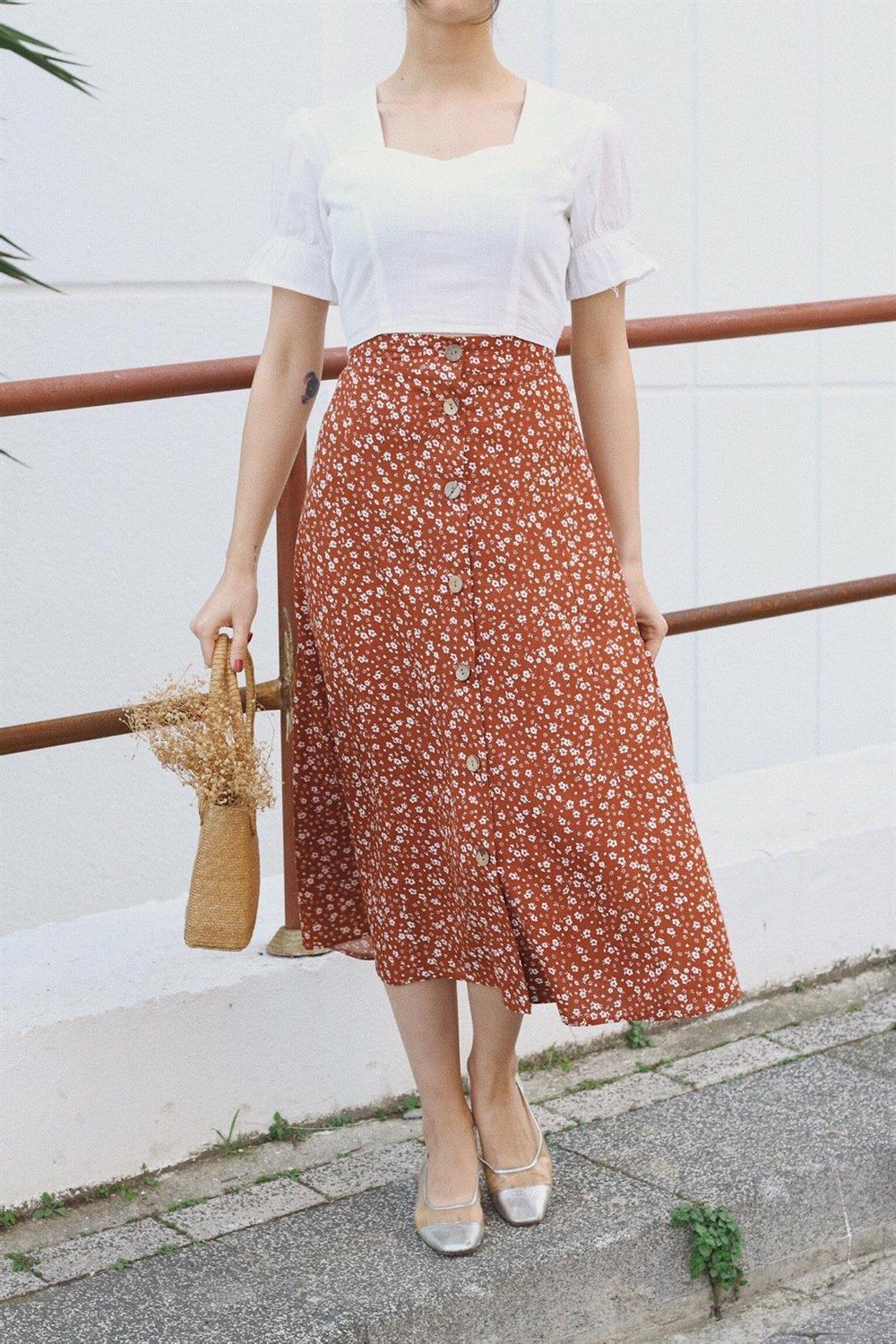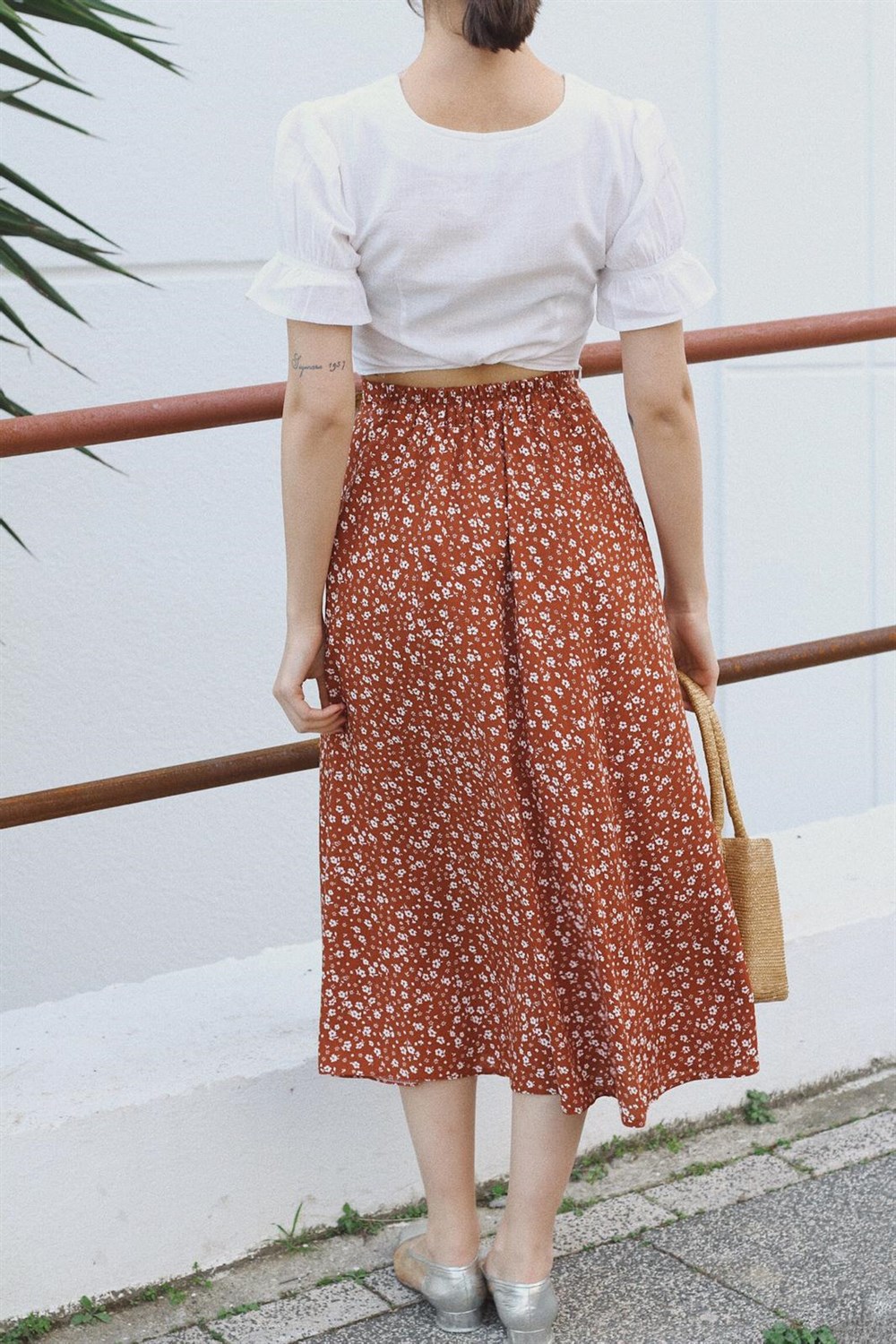 Viscose fabric, s-m size, elastic back waist, inspired by vintage design product height 80cm, floral pattern dark orange Monroe skirt.