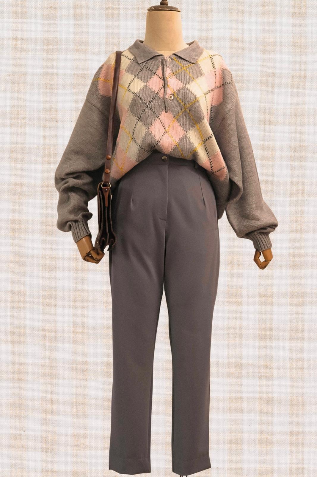 Koton & Polyester kumaş, iç göstermeyen kumaş özelliğiyle, inspired by vintage tasarım ürünümüz, ekstra yüksek bel, Gri Lavanta Meggy Pantolon.