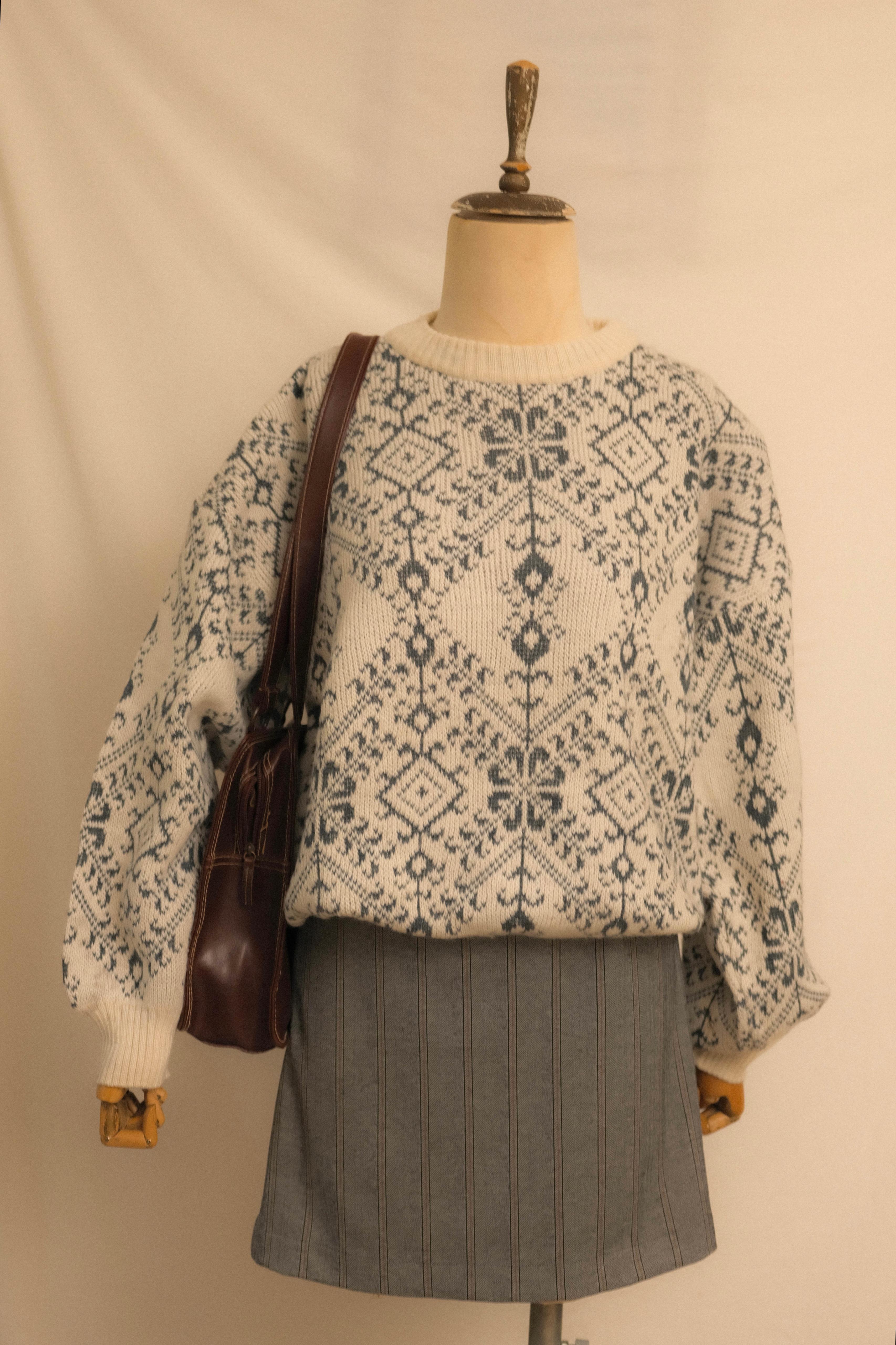 Yün & Akrilik örme, Oversize beden, 90larr desenli kazak.