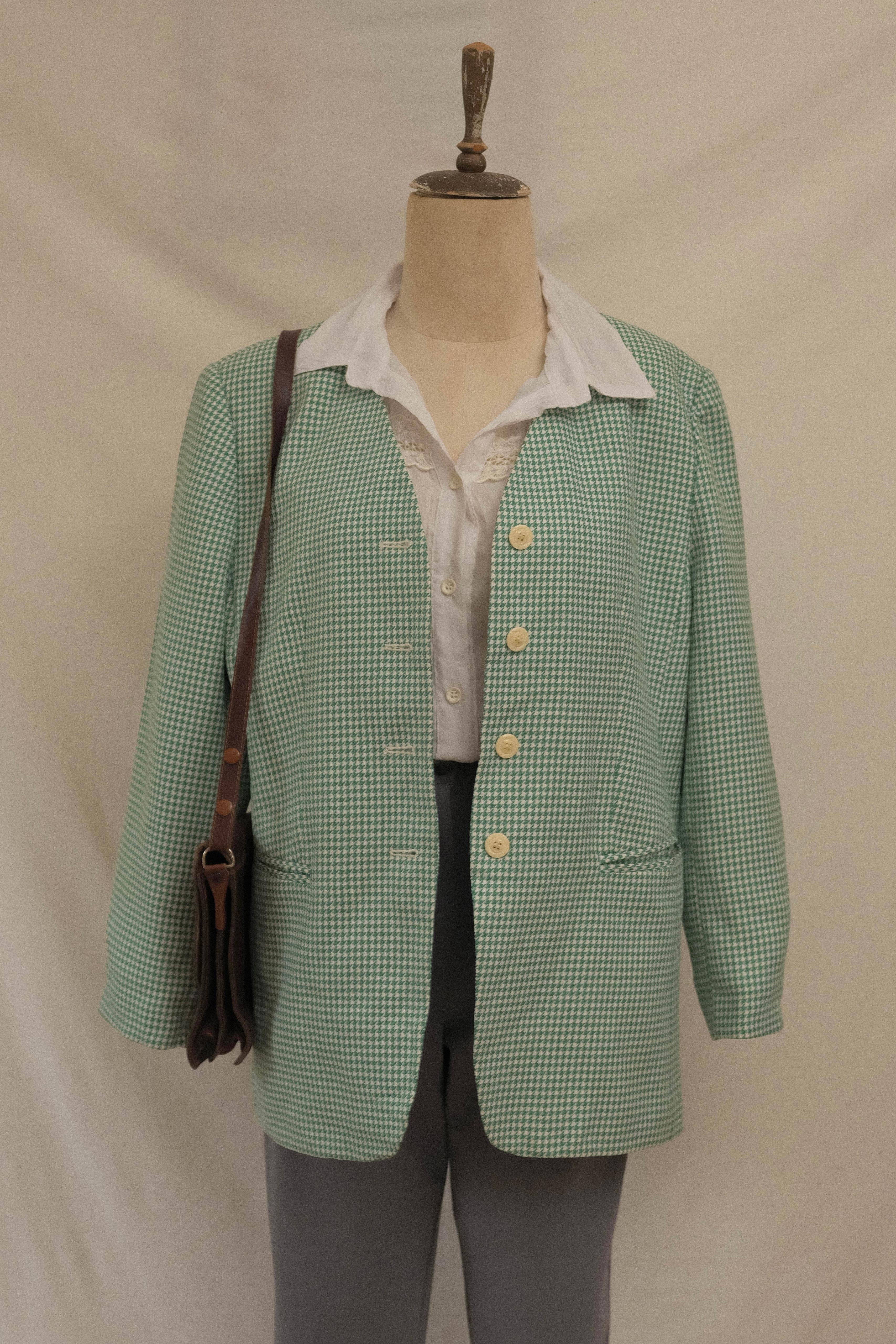 Polyester kumaş, Oversize beden, 90lar kaz ayağı desen ceket.