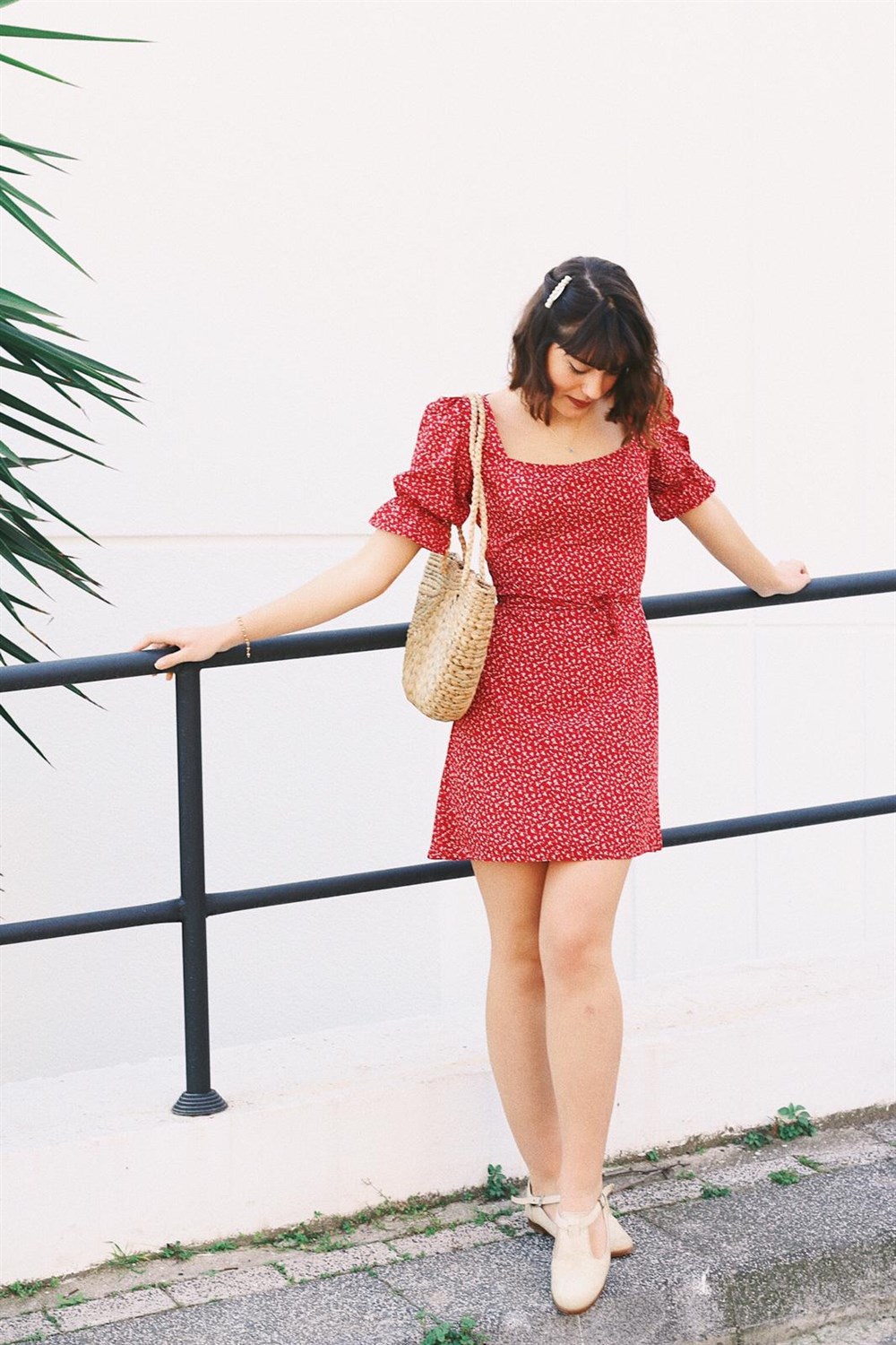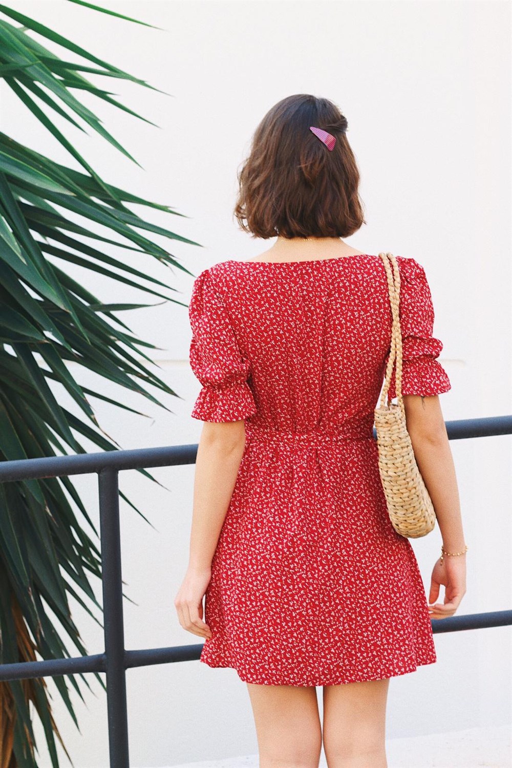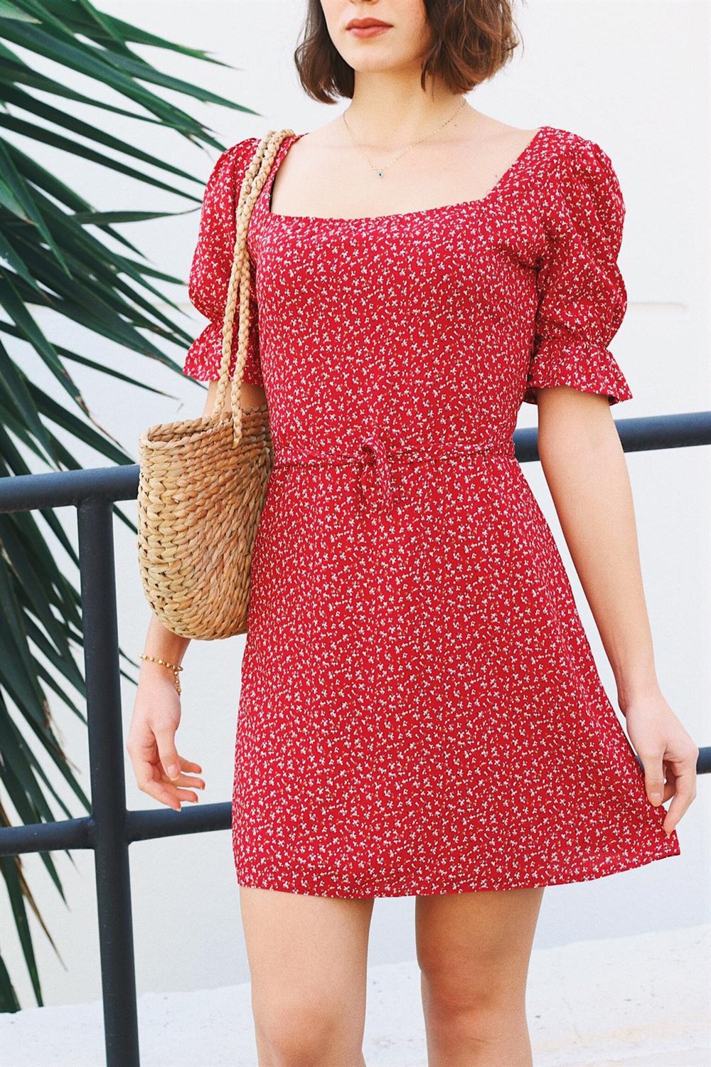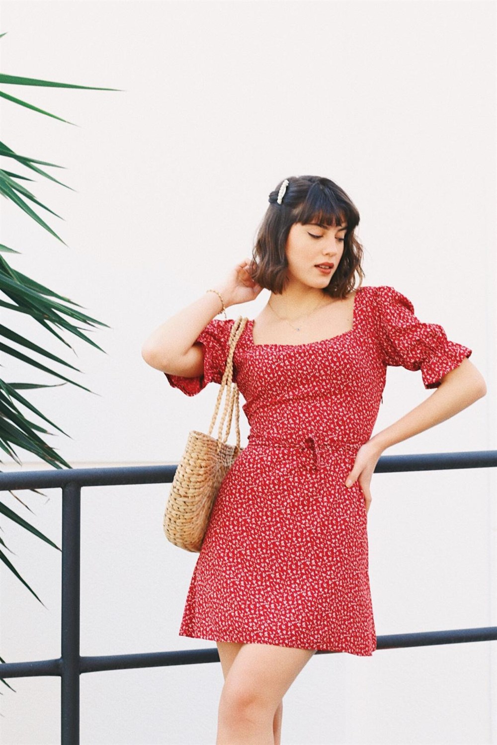 Viscose fabric, s-m size, beltted, lined, inspired by vintage design product, height 84cm, red Clementine dress.