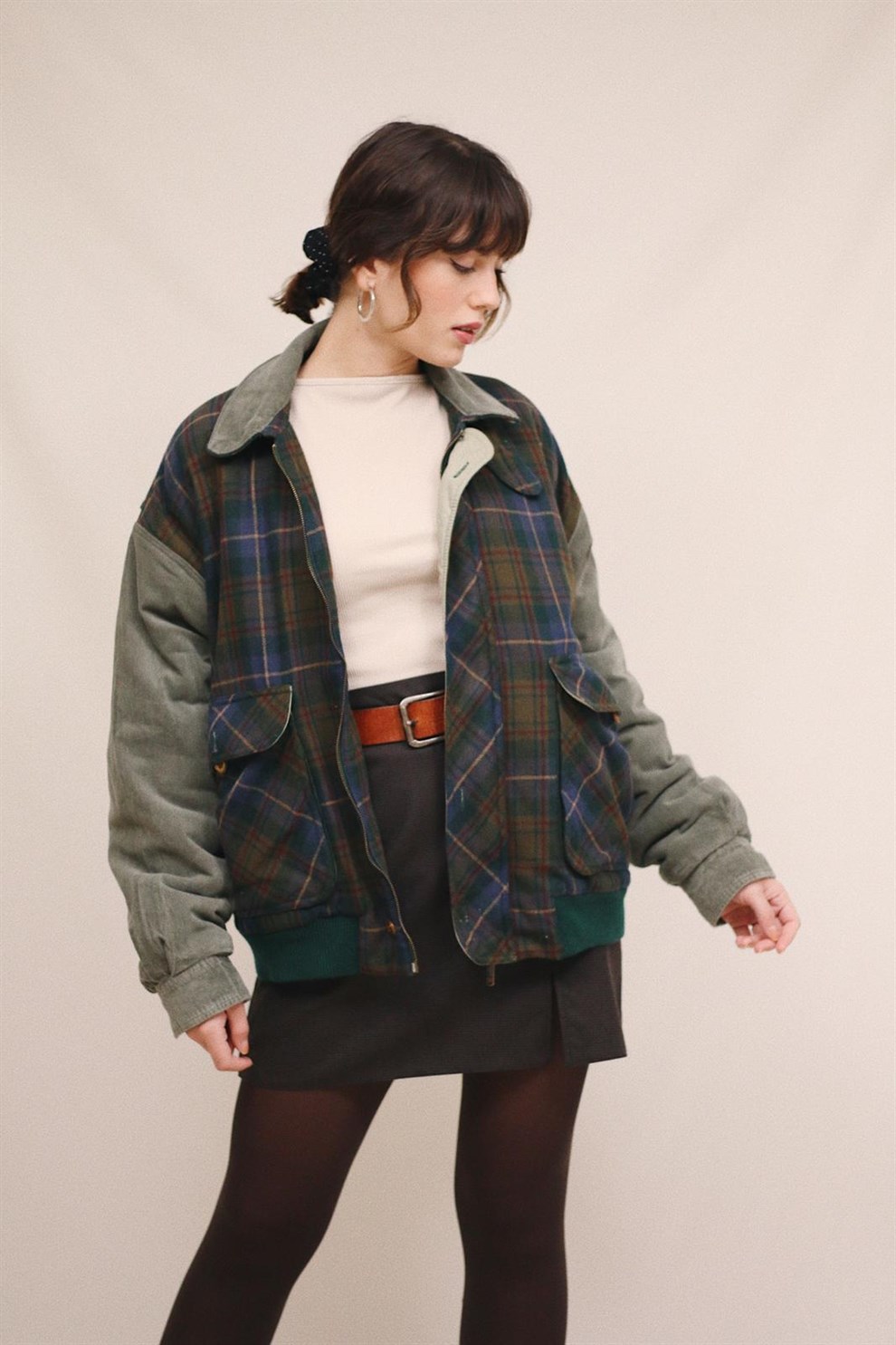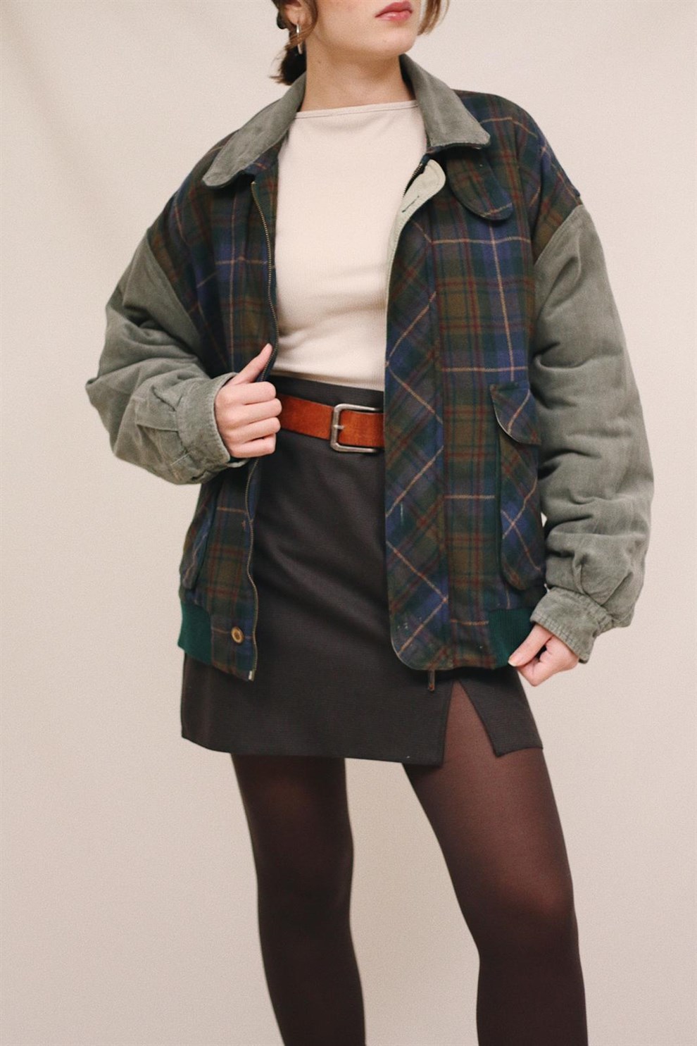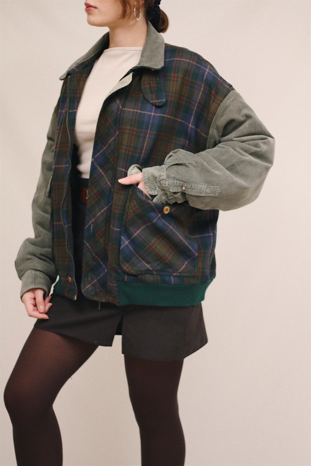 Ribbed Velvet & Wool fabric, oversize size, loose cut Flannel Wool Bomber Coat