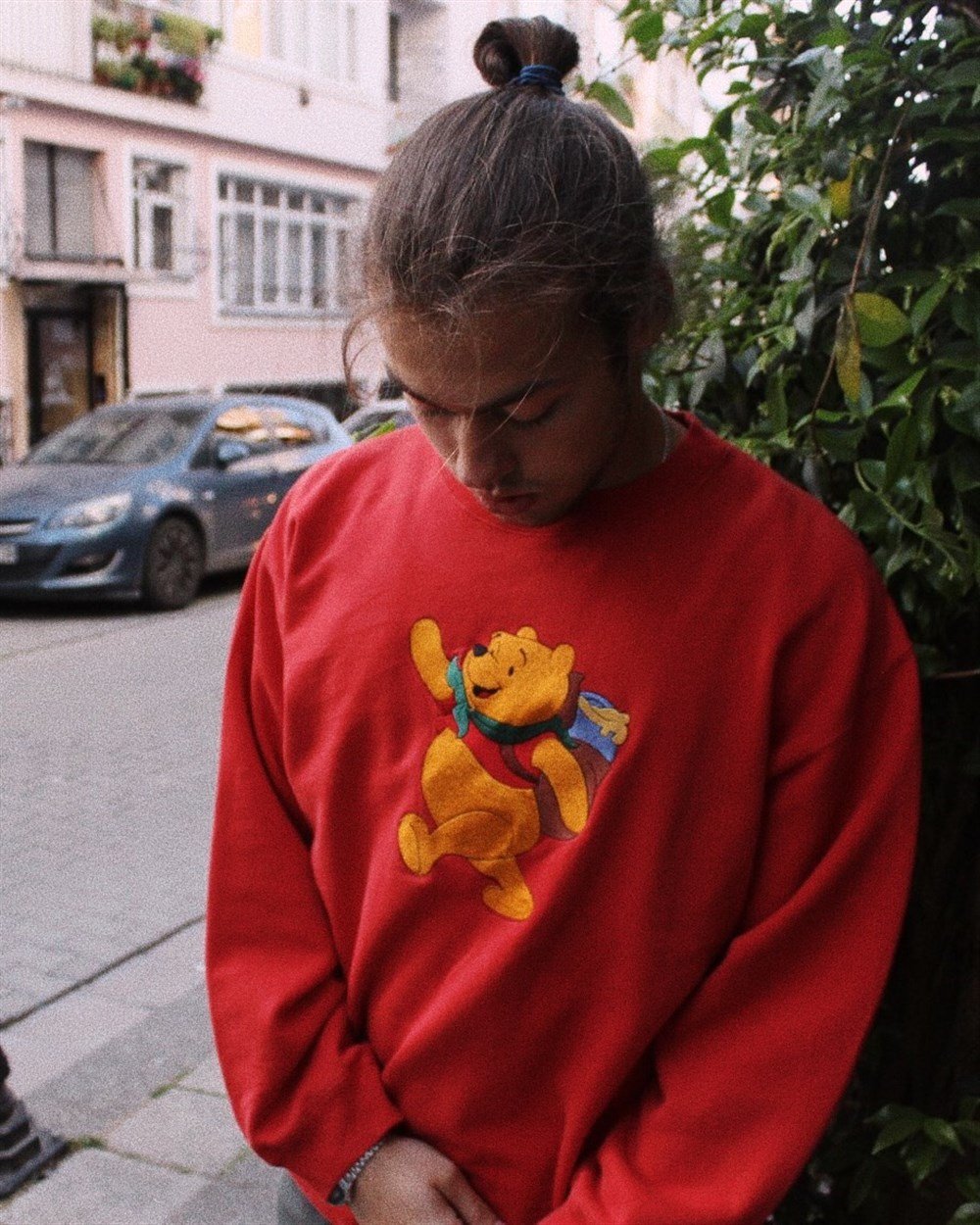 Cotton fabric, standard size, unisex, Original Disney Store Winnie the Pooh sweat. It is one of the carefully selected products from abroad. The condition of the garment is high.  The model is 1.76 meter and "m" size. Don't forget to follow us on Instagram @buyukanneminsandigi