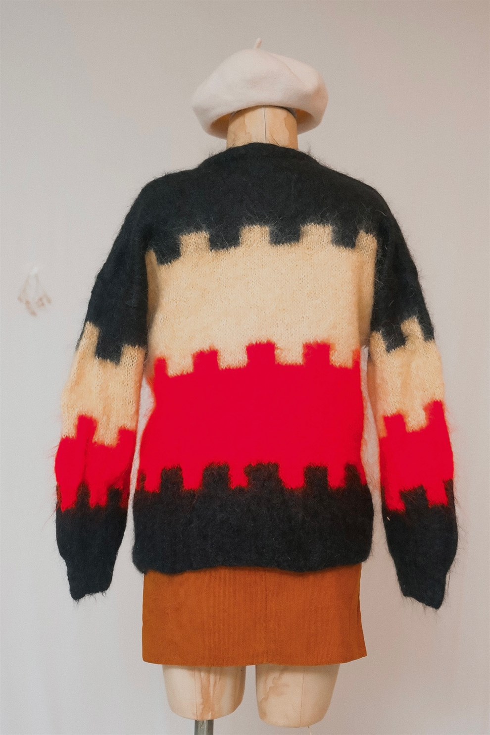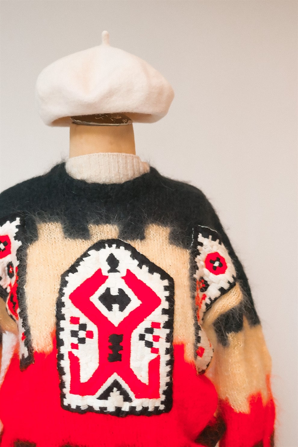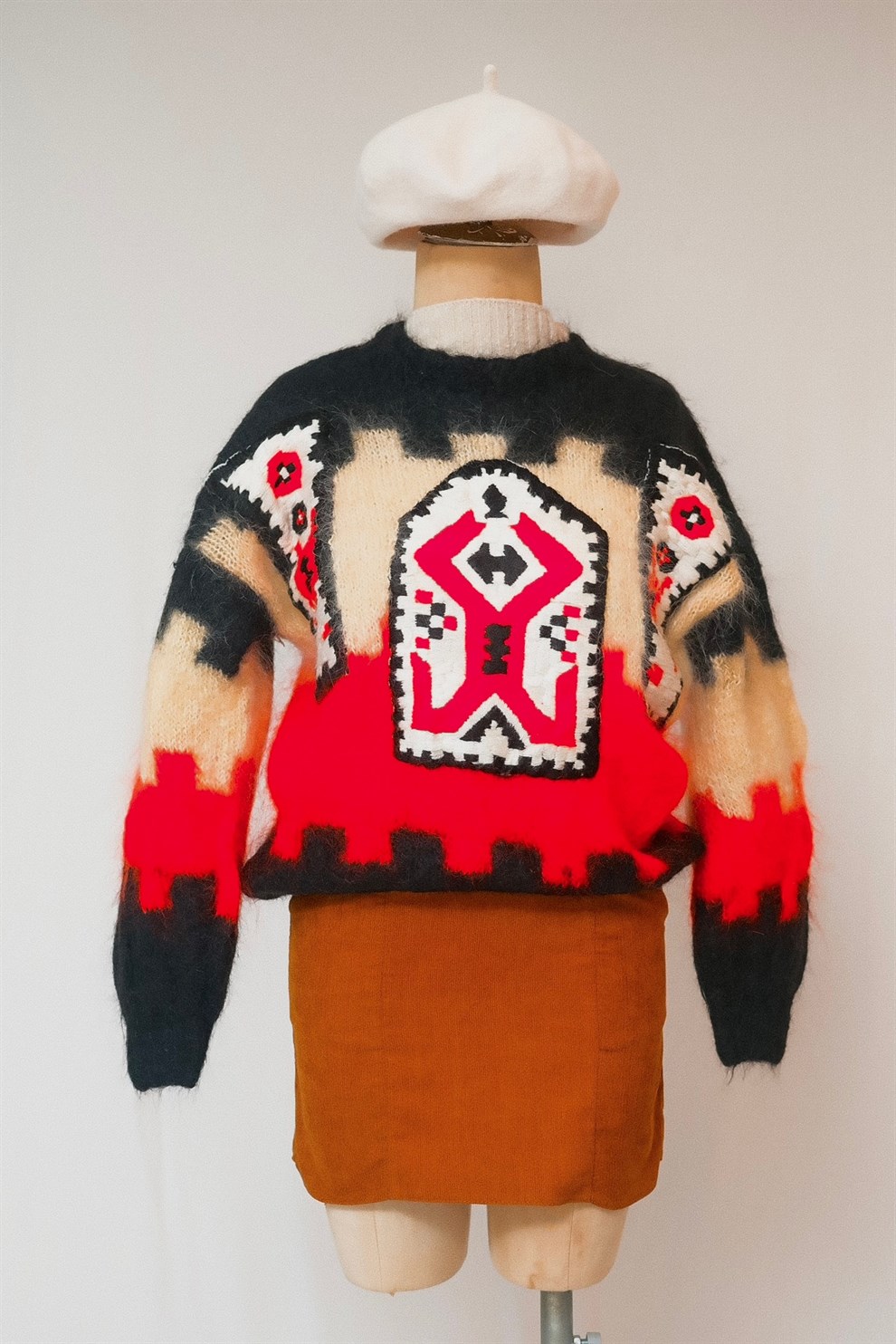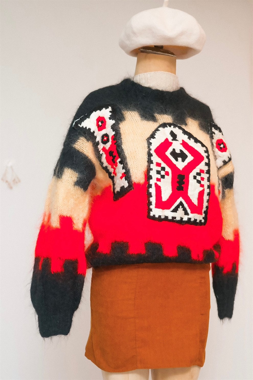 Saf yün örme, Small beden, 90lar baskılı kazak.