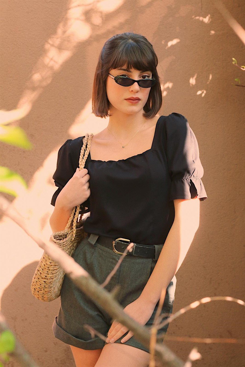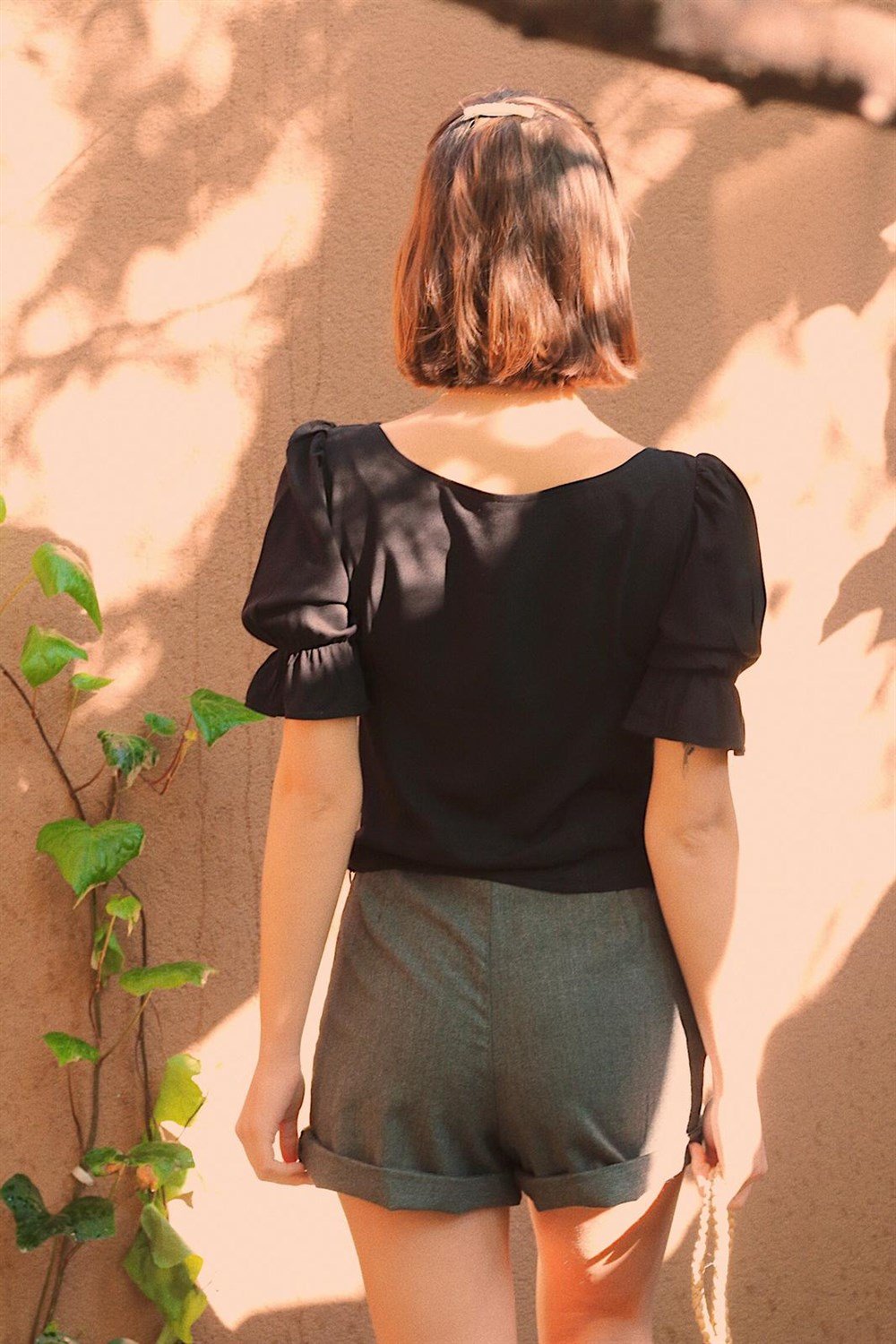 Viscose fabric, side zippered, with small and medium size options black clementine inspired by vintage design shirt.