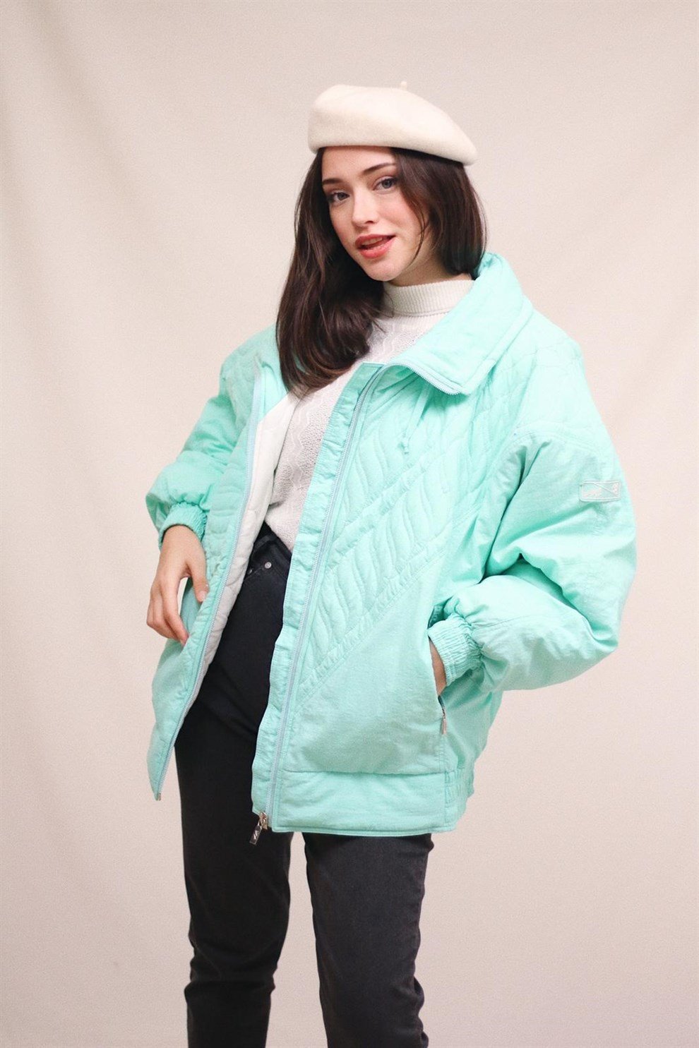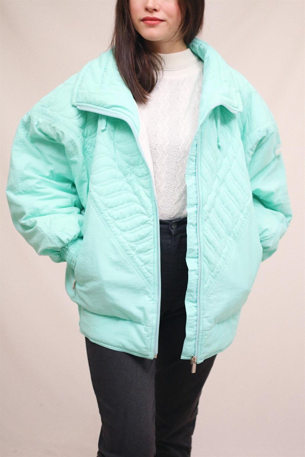 Polyester fabric, oversize size, loose cut Sea green bomber.