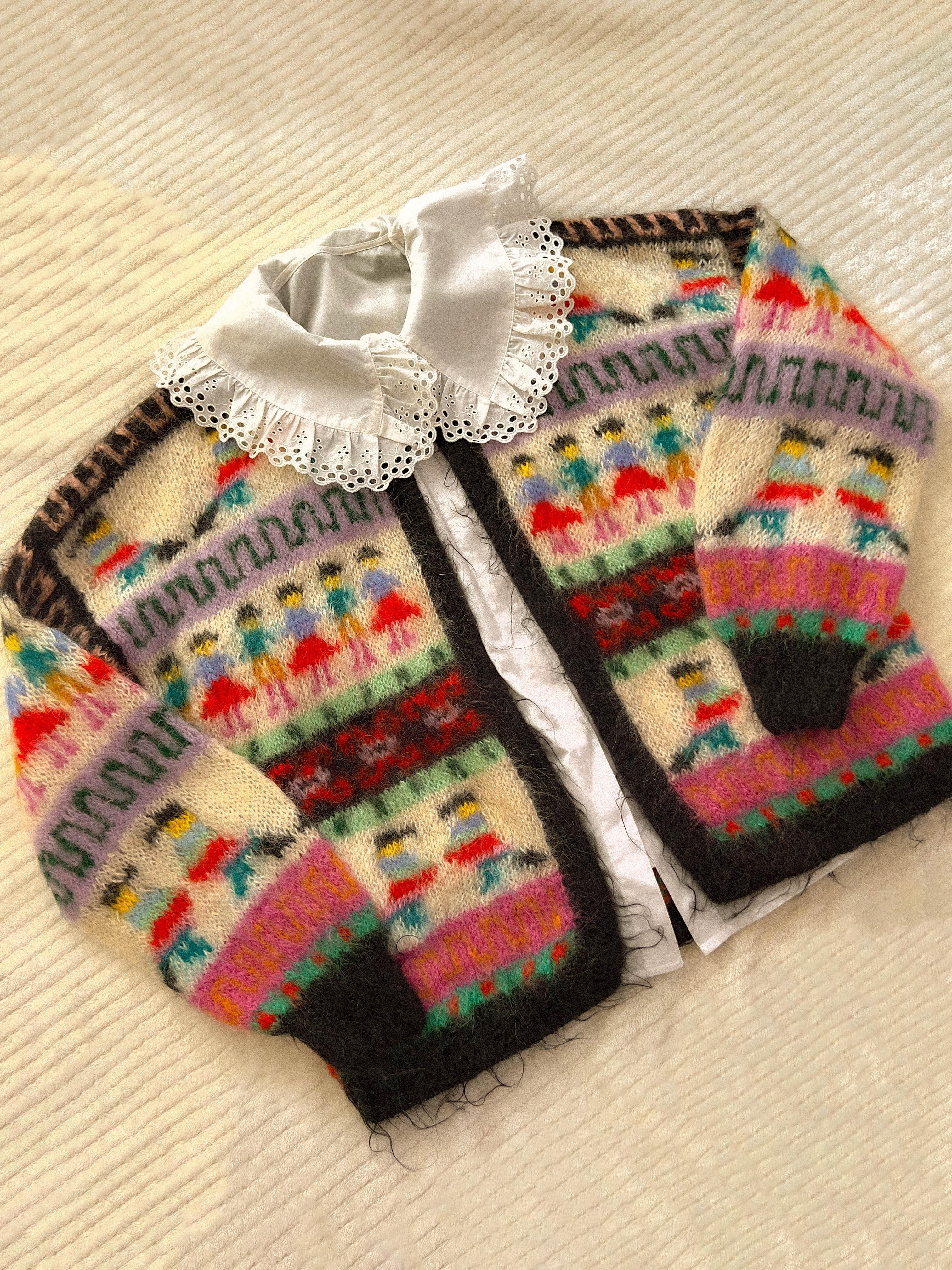 Yumuşacık dokusu, canlı renk geçişleri ve el emeği desenleriyle 1970–80’lerin İskandinav / halk motifli ruhunu taşıyor.